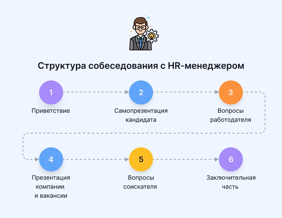 Собеседование — важнейший диалог с кандидатом. Вопросы работодателя должны быть направлены на раскрытие личности и потенциала будущего члена команды. Предлагаем придерживаться четкой структуры собеседования: