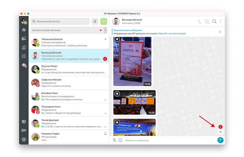 Модернизирован механизм прочтения сообщений: счётчик непрочитанных сообщений будет постепенно уменьшаться по мере прочтения новых сообщений в чате.