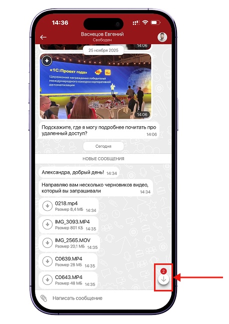 Модернизирован механизм прочтения сообщений: счётчик непрочитанных сообщений будет постепенно уменьшаться по мере прочтения новых сообщений в чате.
